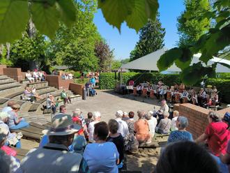Dieses Jahr startete der bunte Tag mit Sonnenschein, viele Besucher lockte das Kaiserwetter in den Bürgergarten von Röbel, in dem sich die Vereinswelt der Ackerbürgerstadt präsentierte. Neben allerlei aktiven Ständen genoss das Publikum bei sommerlichen Temperaturen die musikalischen Leckerbissen der Blaskapelle Röbel, dem Männerchor, dem gemischten Chor und der Band „Heizraum“. Dank des einheimischen Unternehmens Sanitär-Heizung-Lüftung Martin Schatull, welches den Tag unterstützte und der Freiwilligen Feuerwehr gab es auch Gelegenheit den Durst zu löschen und den Hunger zu stillen.