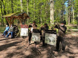 Röbel (at). Die Buche lockt mit ihrem jungen Grün, die Vögel zwitschern und die Sonne bahnt sich mit Kraft durch das wachsende Laubdach und wärmt die wintermüden Glieder. Wenn nicht jetzt, wann dann? Über 70 wanderlustige Bürger aus Röbel und Gemeinden nahmen die Einladung des Röbeler Bürgermeisters und des Forstamtes Wredenhagen an und begaben sich am Samstag des letzten Aprilwochenendes auf den Weg zum Treffpunkt Kroneiche. Begrüßt durch den Bürgermeister und die Müritzer Jagdhornbläser wurde zur Einstimmung das „Mecklenburger Heimatlied“ gesungen, bevor sich die wanderbeschuhten Füße ihren Weg durch die grüne Lunge Röbels bahnten.