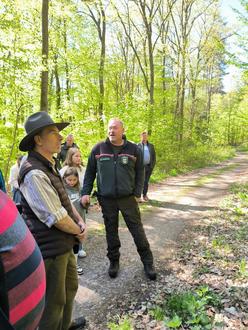 Eine weitere Gruppe scharte sich um den Revierförster Martin Neumann und erfuhr Wissenswertes über die Waldbewirtschaftung und einheimische Gehölze.