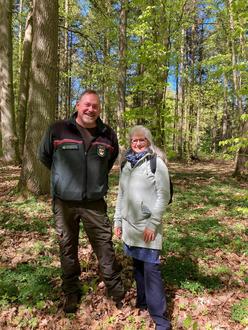 Revierförster Martin Neumann mit Kursleiterin "Waldbaden - Achtsamkeit in der Natur" Annett Freese