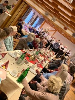 Nach einer gemütlichen Kaffeetafel sangen wir bei einem Glühwein gemeinsam Weihnachtslieder, die von Gerda Theede auf dem Akkordeon begleitet wurden und Kirsten Hinz erfreute uns mit lustigen Geschichten. Dafür sagen wir Beiden ganz lieben Dank.