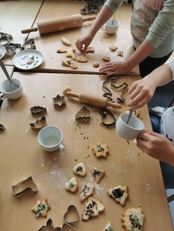 Wir haben am 05.11.2025 mit dem Landfrauenverein Stapelholm e.V. Kekse gebacken. Es war sehr toll! Die Landfrauen waren sehr nett. Sie haben den Teig mitgebracht. Wir haben viele kreative Kekse gebacken und verziert. Die Putzfee hat sich leider nicht so gefreut, weil wir etwas gekleckert haben. Wir hatten viel zu viele Plätzchenformen. Der Keks-Teig war sehr lecker. Doch nach dem Naschen hatten alle Bauchschmerzen. Insgesamt war es ein toller Tag! Dankeschön!