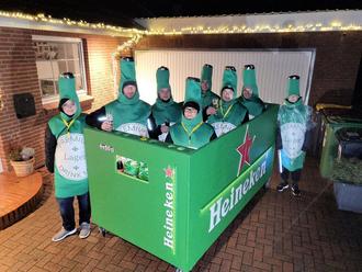 Kiste mit Inhalt: Das Sieger Team Rummelpottlaufen 2022, vor dem Start in Stapel