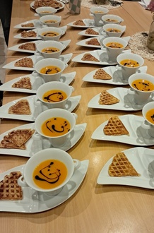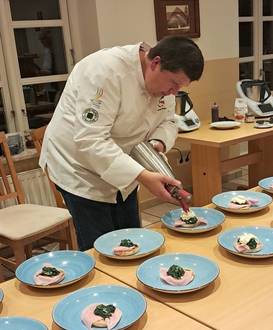 Das 4-Gänge Menü nahm Gestalt an, so dass gegen 20.30 Uhr mit dem essen der Vorspeise begonnen werden konnte. Alle Speisen wurden kunstvoll angerichtet und mit viel neuen Ideen zubereitet.