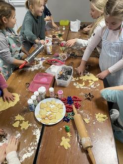 Das Schlusslicht bildete die Grundschule in Bergenhusen. Hier haben wir uns am 11.12. getroffen und den ganzen Nachmittag fleißig leckere Kekse gebacken, mit Zuckerguss bestrichen und mit Perlen geschmückt.