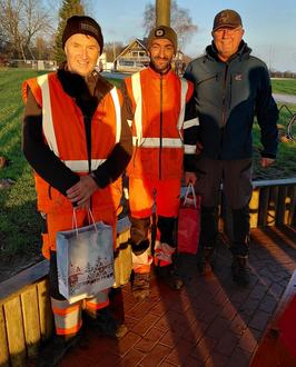 „Gemeindearbeiter“ – Axel Gutzmann (rechts) bedankt sich bei den Gemeindearbeitern Michael Krohn (links) und Achim Callesen für ihre tatkräftige Unterstützung bei der Gestaltung des Bouleplatzes.