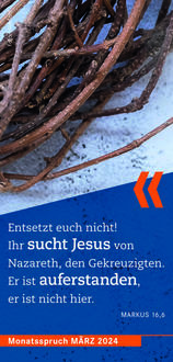 Entsetzt euch nicht! Ihr sucht Jesus von Nazareth, den Gekreuzigten. Er ist auferstanden, er ist nicht hier. (Markus 16,6)