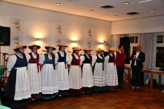 Ein Augenschmaus war der folgende Auftritt der Stapelholmer Tanz- und Trachtengruppe unter der Leitung von Sönke Thede. Drei Stücke aus verschiedenen Regionen boten die Tänzerinnen dar, sie wurden vom Publikum begeistert aufgenommen.