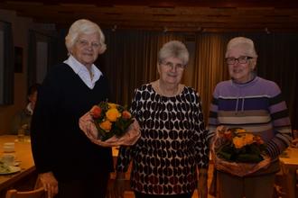 Ilse Johannsen, Traute Buchholz und Dörte Paulsen (leider nicht anwesend wurde nachgeholt) bei denen wir uns mit einen Blumenstrauß bedankten. Hilde Pöplau wurde für 55 Jahre Mitgliedschaft und Jahrzehnte lange aktive Arbeit (davon 17 Jahre Schriftführerin) im Vorstand zum Ehrenmitglied ernannt. Der Höhepunkt war, dass Hilde uns ihr Protokollbuch mit all den Berichten von den Reisen und Veranstaltungen die sie geschrieben hat an Elke überreichte. Wenn Hilde bei der Jahreshauptversammlung ihre Schularbeiten vorgelesen hat, kamen jedem die Erinnerungen an die schönen Zeiten zurück.