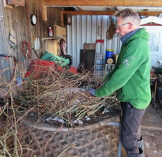 Stephan Struve fertigt neue Nester für Störche an