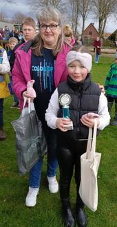 Während die kleinen Schatzsucher ihre Beute begutachteten, gönnten sich die Erwachsenen eine wohlverdiente Kaffeepause mit leckerem Kuchen. Und die Krönung des Tages? Der Wanderpokal für das Finden des „besonderen“ Hasen ging an die unermüdliche Lina Hansen!