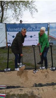 Die Bürgermeisterin aus Drage Maren Fürst, und aus Seeth die 2. stv. Bürgermeisterin Astrid Bier nahm den Spaten selbst in die Hand.