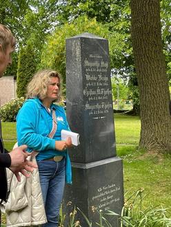 Tanja Thiesen berichtet ihren Zuhörern auf dem ehemaligen Friedhof vom Hergang des Unglücks bei dem 1886 vier junge Frauen den Tod fanden.