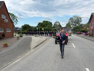 Die Scheibengilde Erfde kann auf ein harmonisches Gildefest bei bestem Wetter zurückblicken. Vom 30.05.2024 bis zum 02.06.2024 wurde kräftig gefeiert. Am Freitag brachten etwa 40 Gildebrüder traditionell die Scheibe unter Begleitung der Feuerwehrkapelle Erfde zum Schießplatz, dort wurde ein gemütlicher Abend verbracht bevor es dann zum gemeinsamen Essen wieder zurück ins „Gildehaus Rahn`s Gasthof“ ging.