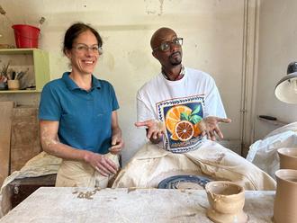 Töpferin Anne Hümme und Yared Dibaba in der Töpferwerkstatt