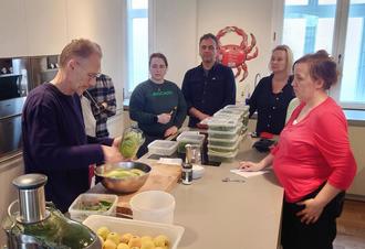 Von der Prinzeninsel ging es weiter in Roberts Restaurant-Küche direkt am Markt in Plön. Hier gab es Antworten auf Fragen wie z.B.: „Wie bleiben die gepflückten Kräuter länger frisch?“ oder „Wie konserviere ich Knospen, Blätter und Kraut, um den Geschmack vielleicht noch intensiver zu machen.“