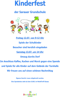 Bei Fragen sprechen Sie gerne die Elternvertreter an und vielleicht sehen wir uns beim Kinderfest.