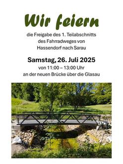 an der Brücke über die Glasau feiern. Radfahrer und alle anderen Interessierten können dann den Radweg ausprobieren, eine Brückenüberfahrt machen und sich über Details zum Radweg informieren.
