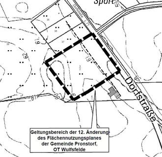 Der von der Gemeindevertretung Pronstorf in der Sitzung am 08.07.2025 gebilligte und zur Veröffentlichung bestimmte Entwurf der 12. Änderung des Flächennutzungsplanes der Gemeinde Pronstorf OT Wulfsfelde für das Gebiet „Fläche südlich der Dorfstraße Nr. 5 und nördlich der Dorfstraße Nr. 1" mit der Begründung werden in der Zeit vom