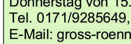 Telefonisch jeden Dienstag, Mittwoch und Donnerstag von 15.00 bis 18.00 Uhr