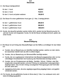 (3) Hunde, die steuerfrei gehalten werden dürfen (§ 6), werden bei der Berechnung der An-zahl der Hunde nicht angesetzt; Hunde, für die die Steuer ermäßigt wird (§ 5), gelten als erste Hunde.