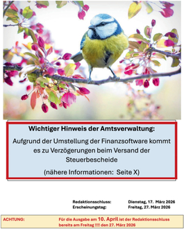 ACHTUNG: Für die Ausgabe am 10. April 2026 ist der Redaktionschluss bereits am Freitag, den 27. März 2026