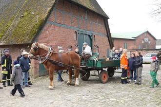 Ein Bild vom Dorfputz 2009, auch dabei ein Pferdegespann