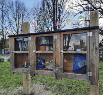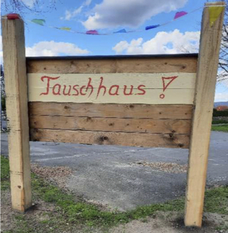 Zentral am Dorfplatz befindet sich unser neues Tauschhaus. Seit dem Aufstellen am 23.03.2024 wurde es auch schon fleißig bestückt.