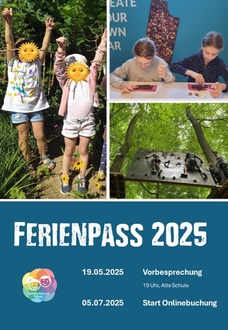 Nun steht auch schon bald die Planung für den Ferienpass an. Die Vorbesprechung dafür ist am 19.05. um 19 Uhr in der alten Schule. Wir hoffen auf eure Unterstützung, um wieder ein großes Angebot für die Kinder bereitzustellen. Wer auch als Privatperson eine Aktion anbieten möchte, ist ebenfalls eingeladen. Der Ferienpass geht dann am 05.07. online.