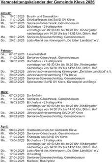 | Do., 19.02.2026 | Jahreshauptversammlung Kinnergoorn „De lütten Landlüüd“ e.V. |