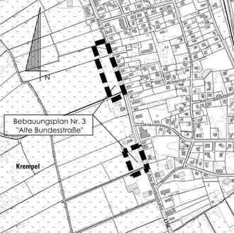 Die Gemeinde Krempel beabsichtigt die Aufstellung des Bebauungsplanes Nr. 3 für das Gebiet "westlich der Landesstraße 156 (Alte Bundesstraße), in westlicher Ortslage der Gemeinde Krempel, zwischen den Grundstücken "Alte Bundesstraße 16" und "Alte Bundesstraße 18" und zwischen den Grundstücken "Alte Bundesstraße 20 und Alte Bundesstraße 22".