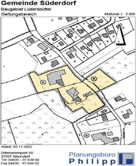 Der Landrat des Kreises Dithmarschen hat mit Bescheid vom 27.02.2025, Az.: 221/31 den von der Gemeindevertretung in der Sitzung am 28.01.2025 als Satzung beschlossenen B-Plan Nr. 2 der Gemeinde Süderdorf für das Gebiet „Grundstücke Lüdersbütteler Straße 7 und 9 sowie auf der gegenüberliegenden Straßenseite in einer Länge von ca. 45 m und einer Tiefe von ca. 45 m", bestehend aus der Planzeichnung (Teil A) und dem Text (Teil B), genehmigt.