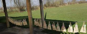 Einen Beutel mit einem Schokohasen wartete schon auf jedes Kind, so hatte jeder auch gleich eine Tasche, wo die gefundenen Eier gesammelt werden konnten. Nach dem Eiersuchen gab es zur Stärkung Getränke und Grillwurst.