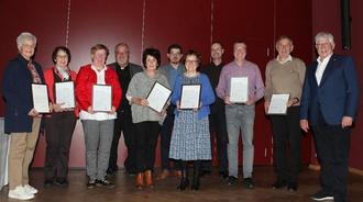 Der Fokus des diesjährigen Cäcilienfestes lag aber eindeutig auf dem gemütlichen Beisammensein im Kreise der Sänger und Sängerinnen. Ehrungen waren ein weiterer Programmpunkt: Helga Heinz, Hans-Jürgen Bouhs und Barbara Ley singen bereits seit 25 Jahren, Bernd Schlesiger immerhin schon 45 Jahre im Chor. Annelie Reichling und Angelika Broll können auf 55 Jahre zurückblicken. Aber eine ganz besondere Ehrung wurde Hedwig Gorbach zuteil: sie singt seit 70 Jahren im Dernauer Kirchenchor zur Ehre Gottes. Ein seltenes Jubiläum. Die Jubilarinnen und Jubilare bekamen Urkunden, Anstecknadeln und ein Geschenk des Chores. Ein kräftiger Applaus der Anwesenden rundete den würdigen Programmpunkt ab.