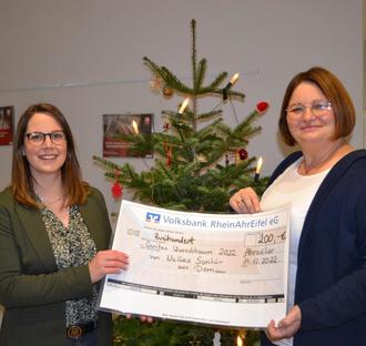 KREISSTADT. 200 Euro spendete die Firma Nelles Sanitär Heizung aus Dernau dem Caritas-Wunschbaum. Maxi Nelles überreichte den Betrag an Caritas-Mitarbeiterin Christiane Böttcher. „Trotz oder gerade wegen besonderer Zeiten ist es uns ein Anliegen, auch in diesem Jahr mit einer Spende zu unterstützen. Wir legen den Fokus auf eine Spende anstelle umfangreicher Weihnachtspräsente“, sagte sie dazu. Christiane Böttcher bedankte sich: „Damit unterstützen Sie Menschen, die dringend Hilfe brauchen. Die Caritas-Beratungsdienste erfahren immer wieder, dass Menschen dringend Dinge brauchen, die sie sich aber nicht leisten können. Dank der Wunscherfüller kann diesen Menschen geholfen werden, und das mit unserem ‚Vier-Jahreszeiten-Wunschbaum‘ über das ganze Jahr.“