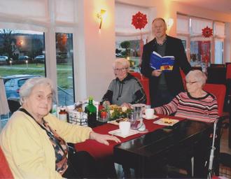 So waren die Bewohner des Hauses sehr gerührt über die besinnlichen Geschichten. Zum Schluss bedankte sich Josef Niethen bei Schürer und beschenkte ihn mit einem guten Rot- und Weißwein aus Rech.