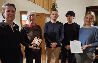 Das Vorstands-Team – Martin Müller, Julius Knieps, David Müller und Anna Steins – freute sich besonders darüber, Barbara Fischer als neues Mitglied willkommen zu heißen. Außerdem wurden Anna Steins sowie Winfried Fuhrmann, Theresa Lang und Harald Mönch (in Abwesenheit) für 25 Jahre Mitgliedschaft in der Kolpingsfamilie geehrt.