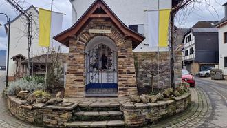 DERNAU. (kan.) Zu Ehren des Schutzpatrons des „Matthies-Heiligenhäuschen“ in Dernau, kamen am 21. Februar wieder die Bewohner um dieses Heiligenhäuschens herum zusammen, um den Ehrentag des Namenspatrons zu begehen. Ort der Feier war in diesem Jahr das Dernauer Weingut Schlosshof. Neben den nachbarschaftlichen Gesprächen spielte die Dernauer Musikkapelle auf. Das „Matthies Heiligenhäuschen“ war von der Flut schwer betroffen und ist im Zuge der Aufbauarbeiten gemeinsam mit vielen freiwilligen Helfern und Einheimischen wieder aufgebaut worden. Der Wiederaufbau des Heiligenhäuschens wird im Zuge des Ausbaus des Nahwärmenetzes in Dernau abgeschlossen.