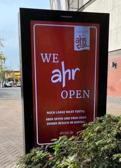 AHRTAL. Wer in der Vorweihnachtszeit zum Shopping beispielsweise durch das Westfield Centro in Oberhausen oder die Düsseldorf Arcaden schlenderte, dem begegnete dort die aktuelle „We AHR open“-Kampagne des Ahrtal-Tourismus. 20-sekündige Spots liefen auf allen digitalen Stelen in den von Unibail-Rodamco-Westfield (URW) betriebenen Shopping-Centern, vor allem in Nordrhein-Westfalen. Auch das Minto in Mönchengladbach und das Palais Vest in Recklinghausen zählten zu den Werbestandorten. Insgesamt war der We Ahr open-Spot somit auf 160 Bildschirmen an 80 Totems, wie die digitalen Stelen im Fachjargon genannt werden, zu sehen. Auch Immobilieneigentümer-Unternehmen wie die Union Investment unterstützen die Kampagne.