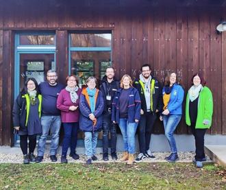 Kooperationspartner des Klappcafés in Ahrbrück v.l.n.r. B. Choi (Helfer-Stab), M. Maltzahn (Fluthilfe MHD), S. Möckel-Lamberty (PG Altenahr),C. Hoffmann (Hospiz-Verein Rhein-Ahr e.V.), M. Mulia-Dharma (Helfer-Stab), S. Reuter (Fluthilfe MHD), T. Schneider (Helfer-Stab), P. Jeandrée (Gemeindeschwester^plus ), M. Kremer-Breuer (PG Altenahr).