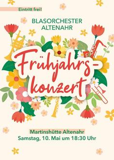 ALTENAHR. Das Blasorchester Altenahr e. V. lädt alle Musikbegeisterten herzlich zu seinem diesjährigen Open-Air-Frühjahrskonzert am 10. Mai, um 18.30 Uhr an der Sankt Martins Hütte in Altenahr ein. Die Gäste können sich auf ein breit gefächertes Repertoire freuen, bei dem für jeden Geschmack etwas Passendes dabei ist. Alle Musikerinnen und Musiker freuen sich schon sehr darauf, die Gäste mit ihrer Freude an Musik und dem Musizieren anzustecken und gemeinsam einen schönen Abend zu verbringen. Der Eintritt ist frei.