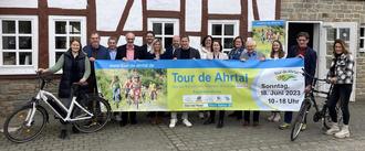 ANTWEILER.OC. Das kreis- und landesübergreifende Familienevent rund ums Rad zwischen Blankenheim, Hillesheim, Müsch und Ahrbrück wird in diesem Jahr am 18. Juni von 10 Uhr bis 18 Uhr stattfinden. Am vergangenen Dienstag hatten die Veranstalter das offizielle Programm in einer Pressekonferenz im Gemeindehaus Antweiler der Öffentlichkeit präsentiert. Stellvertretend für den erkrankten Bürgermeister der Verbandsgemeinde Adenau, Guido Nisius, begrüßte Udo Seifen, erster Beigeordneter VG Adenau, insbesondere den gastgebenden Peter Richrath/Ortsbürgermeister Antweiler, Cornelia Weigand/Landrätin Kreis Ahrweiler, Markus Ramers/Landrat Kreis Euskirchen, Jennifer Meuren/Bürgermeisterin Blankenheim, sowie zwei Beisitzer und diverse Sponsorenvertreter. Für die inzwischen 16. Tour de Ahrtal haben sich die Veranstalter auch in diesem Jahr eine Reihe von Highlights einfallen lassen. Die offizielle Eröffnung der Veranstaltung findet um 10 Uhr in Blankenheim statt, wo auch der Radlersegen erteilt wird. Zwischen Blankenheim und Dümpelfeld werden die B258 und im weiteren Verlauf die L73 (Gesamtlänge ca. 35 km) komplett für den Verkehr gesperrt und sind an diesem Tag ausschließlich den Radlern vorbehalten. Im weiteren Streckenverlauf kann auf den Ahr-Radweg (44 km Gesamtlänge) gewechselt werden, der inzwischen bis Ahrbrück wieder befahrbar ist. Ab Ahrdorf kann die Strecke darüber hinaus mit dem Kalkeifel Radweg (22 km Gesamtlänge) kombiniert werden. Als Aktionspunkte sind Blankenheim, Ahrhütte, Ahrdorf, Dorsel, Müsch, Antweiler, Schuld, Insul, Dümpelfeld, Liers, Hönningen, Ahrbrück und Ahütte im Tourplan ausgewiesen. Zahlreiche Attraktionen laden zum Verweilen ein, darunter einige besondere Empfehlungen der Ortsvertreter: der Eifalia Schmetterlingsgarten in Ahrhütte, die Eröffnung der Bewegungswoche in Hönningen am Mehrgenerationenspielplatz, die Radlermesse in Dümpelfeld, die Märchenreise mit dem frechen Raben Corax in Ahrdorf, das Harley Davidson Treffen in Liers, der Museumsbahnhof in Ahütte und viele weitere Aktivitäten. Neben Verpflegung, Unterhaltung, Mitmachaktionen und Pannenservice sind an allen Anlaufstellen Startkarten für das Gewinnspiel erhältlich, mit denen entlang der Strecke verschiedene Stempel gesammelt werden können. Hauptpreis sind 500,- Euro für die Anschaffung eines neuen Fahrrads. Die Gewinner werden nach der Veranstaltung ausgelost und persönlich benachrichtigt.