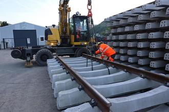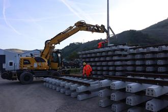 Die Gleisjochs werden aufgestapelt und bald per LKW an die künftige Trasse gebracht.