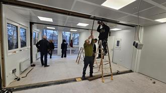 KALENBORN. Autofahrer, die regelmäßig die B 257 befahren, werden es schon längst bemerkt haben: Seit einigen Wochen ist die Containeranlage an der Kalenborner Höhe verschwunden. Seit Spätsommer 2021 waren dort in provisorischen Räumen zunächst eine Arztpraxis und eine Apotheke untergebracht, um die Bevölkerung nach der Hochwasserkatastrophe medizinisch zu versorgen. Später dann wurden die Container genutzt, um mehrere Praxen für Psychotherapie dort unterzubringen – Hintergrund war auch hier der gestiegene Bedarf an Therapieangeboten nach der Flut. Finanziert wurden die Übergangs-Räumlichkeiten durch das Gesundheitshilfswerk action medeor, das seit den ersten Tagen nach der Hochwasserkatastrophe im Ahrtal aktiv ist. Jetzt wurden die Container an der Kalenborner Höhe abgebaut und das Gelände wieder wie vorher hergestellt. Die Containeranlage, die inzwischen der Ortsgemeinde Kalenborn gehört, wurde an einem neuen Standort an der Holmichstraße wieder aufgebaut. Dort wird sie für eine Übergangszeit von Berufsfachschülern der Ahrtalschule genutzt, deren ursprünglicher Standort in Altenburg durch das Hochwasser zerstört wurde. Den Schülern dient die Containeranlage nun als Fachraum für Berufsorientierung, später möchte die Gemeinde Kalenborn darin einen Jugendraum einrichten. Für das Hilfswerk action medeor bedeutet die Versetzung der Containeranlage nun auch einen Abschluss des Projekts. „Mit den Übergangsräumen haben wir einen wichtigen Beitrag zur Gesundheitsversorgung in der Region geleistet. Nach dem Rückbau der Anlage an der Kalenborner Höhe ist dieses Projekt für uns jetzt abgeschlossen“, erläutert Markus Bremers, Pressesprecher von action medeor. Während in Kalenborn ein Gesundheitsprojekt zum Abschluss kommt, befindet sich ein anderes Projekt einige Kilometer ahraufwärts gerade im Bau. Auch hier ist action medeor maßgeblich beteiligt, denn mit Unterstützung des Hilfswerks entsteht in Hönningen-Liers gerade eine Tagespflegeeinrichtung der Sozialstation Adenau-Altenahr. Die Rohbauarbeiten gehen inzwischen zügig voran, Mitte Mai soll Richtfest gefeiert werden für das Gebäude, in dem auf einer Fläche von 300 Quadratmetern 16 Tagespflegeplätze entstehen. „Durch die Flutkatastrophe im Jahr 2021 hat sich auch die Situation für pflegebedürftige und pflegende Menschen im Ahrtal deutlich verschlechtert, die Wege zu Pflegeeinrichtungen sind weit“, erläutert Bremers den Hintergrund des Projekts. „Die Tagespflege soll hier eine deutliche Entlastung der Menschen bringen und zur Strukturverbesserung in der Pflege beitragen.“Finanziert wurden sowohl das Gesundheitsprojekt in Kalenborn alsauch das Pflegeprojekt in Liers unter anderem mit Spenden aus dem Bündnis „Aktion Deutschland Hilft“, in dem action medeor Mitglied ist. Die Gesundheitscontainer an der Kalenborner Höhe wurden jetzt abgebaut und an einem neuen Standort wieder aufgestellt. Am neuen Standort an der Holmichstraße in Kalenborn wurden die Container wieder aufgebaut. Sie dienen nun den Berufsfachschülern der Ahrtalschule als Fachräume zur Berufsorientierung.