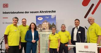 ALTENAHR / AHRTAL. Am 12. Dezember wurde die offizielle Inbetriebnahme der neuen Ahrstrecke gefeiert. Im Vorfeld waren die Ahrtalbahnfreunde (ABF) von DB InfraGo angesprochen worden sich an den Feierlichkeiten zu beteiligen. Ein Teil des Vorstands der Ahrtalbahnfreunde war am 12. Dezember mittags eingeladen an der Sonderfahrt von Dernau nach Altenahr mit Politprominenz und Pressevertretern teilzunehmen.