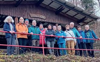 DERNAU. Am 3. Adventssonntag trafen sich 14 Wanderer um 10:00 Uhr zur Jahresabschlusswanderung der Ortsgruppe Dernau. Von Dernau aus ging es hinauf zum Rotweinwanderweg Richtung Altenahr über die landschaftlich schönste Strecke des bekannten Wanderwegs. An der Korbach-Hütte wurde eine kurze Rast gemacht und die Wanderführerin Helga hatte extra wieder ihre leckeren Nussecken gebacken. Frisch gestärkt ging es weiter. In Altenahr war das Ziel die Sternstunden, ein kleiner, gemütlicher Weihnachtsmarkt. Nach leckerem Glühwein kam noch ein Highlight: die Rückkehr nach Dernau mit der zwei Tage zuvor neu eröffneten Bundesbahn. Was für viele etwas ganz Selbstverständliches ist, war für uns alle etwas ganz Besonderes. Vielen Dank an die beiden Wanderführer-in Helga und Manfred für die schöne Tour.