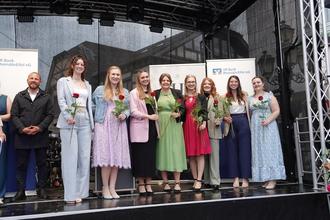 AHRWEILER. Sie sagen selbst von sich, beste Freundinnen zu sein. Am Freitag vor Pfingsten aber mussten die aktuelle Recher Weinkönigin Annabell Stodden und die Dernauer Weinregentin Laura Nietgen gegeneinander antreten. Beide hatten sich für die Wahl zur Ahrweinkönigin beworben, als einzige Kandidatinnen unter den acht Ortsweinköniginnen des Ahrtals. Um 19:21 Uhr am Abend verkündete Lukas Sermann, der neue Vorsitzende des Ahrwein e.V., dann vor hunderten von Festbesuchern auf dem Ahrweiler Marktplatz das Ergebnis: die neue Ahrweinkönigin heißt Annabell Stodden. Großer Jubel brandete auf, ungläubig blickte lediglich die soeben genannte neue Weinmajestät in die Runde.