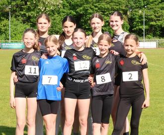 (v. l.): Hintere Reihe: Lina Näkel, Magdalena Schuh, Paula Dahmen und Isabella Zavelberg; Vordere Reihe: Lotta Sebastian, Frida Laux, Soé Stockmann, Henni Laux und Kim Creuzberg. Es fehlt: Mia Hogen