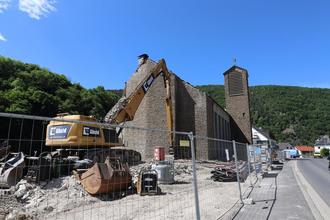 AHRBRÜCK. (kan.) Die Arbeiten zum Abriss der Kirche St. Andreas sind gestartet. In der vergangenen Woche waren die Bagger eines Remagener Abbruch-Unternehmens angerollt und hatten damit begonnen, an der Nordseite der St.Andreas Kirche nach und nach Teile des Dachs einzureißen. Der Abriss wird laut Bauunternehmen voraussichtlich sechs Tage dauern. Die Bruchsteine der Ahrbrücker St.Andreas Kirche sollen nach Angaben des Unternehmens wieder verwendet werden. Wie es hieß, sollen sie in das Mahnmal "DenkAHR", das in Bad Neuenahr-Ahrweiler an die 135 Todesopfer der Flutkatastrophe 2021 erinnern soll, eingebaut werden.