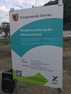 Ein Baustellenschild macht auf das für Dernau wichtige Bauprojekt aufmerksam.